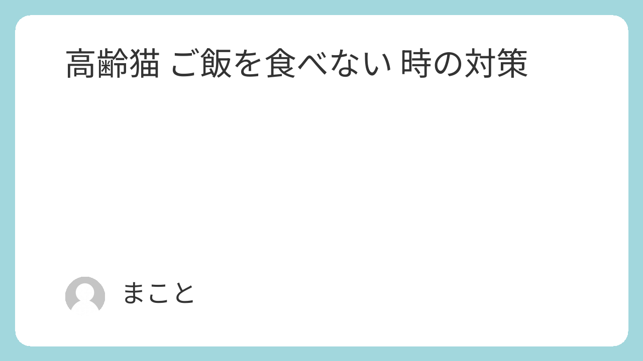 猫と暮らしてきて20年のまことです。特にシニア猫のお世話は得意なので、このブログではその経験をいかし、情報発信していきます。